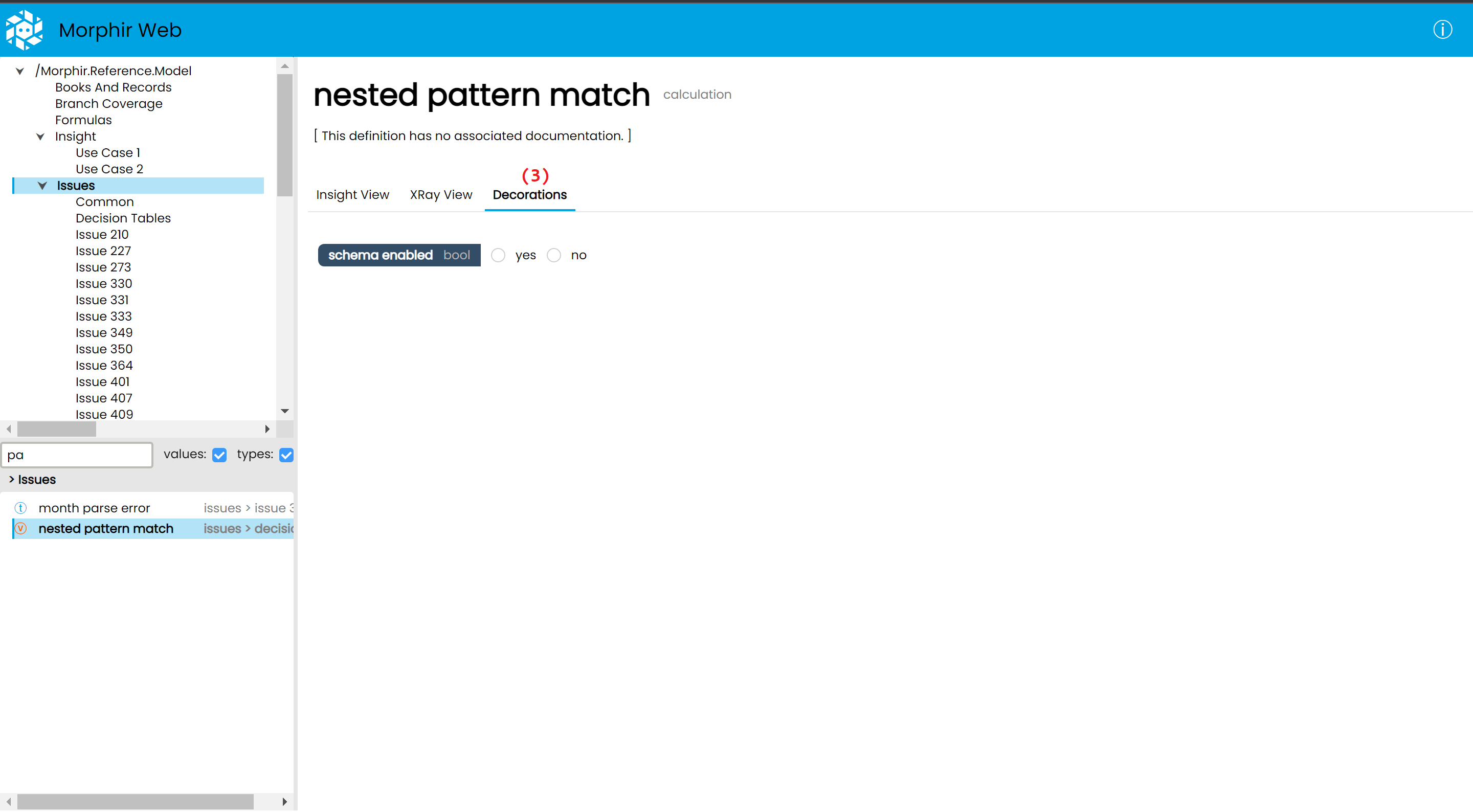 (3) The Decorations tab, which can display editors for additional information, which is not stored inside the Morphir model