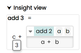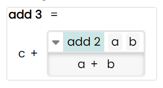 The function in the below visualisation implements adding 3 numbers c, a and b together, by calling the add2 function on a and b, and adding c to the output of that function.