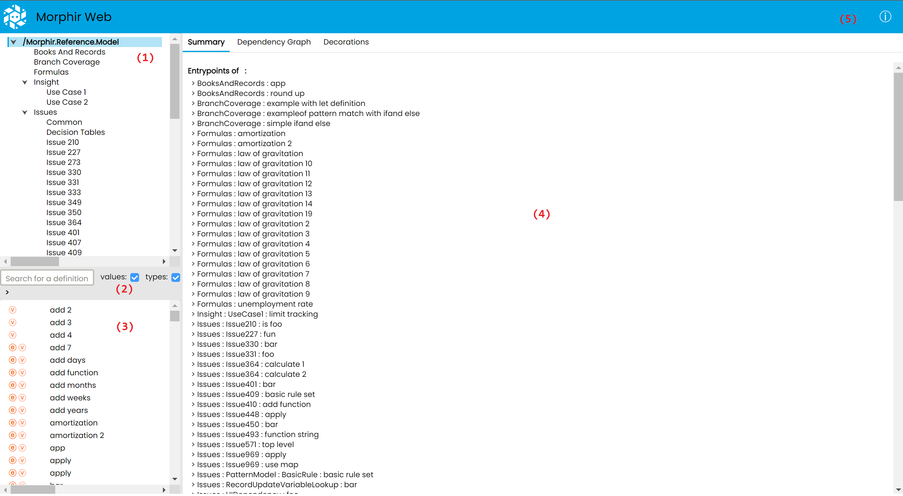 The Morphir Web UI provides a way to browse, visualise, and test a specific Morphir model.